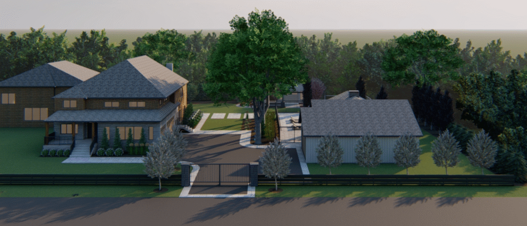 Corner lot landscape design in Oakville featuring custom gardens, hardscape planning, and build-ready drawings. See how professional design boosts curb appeal and value.