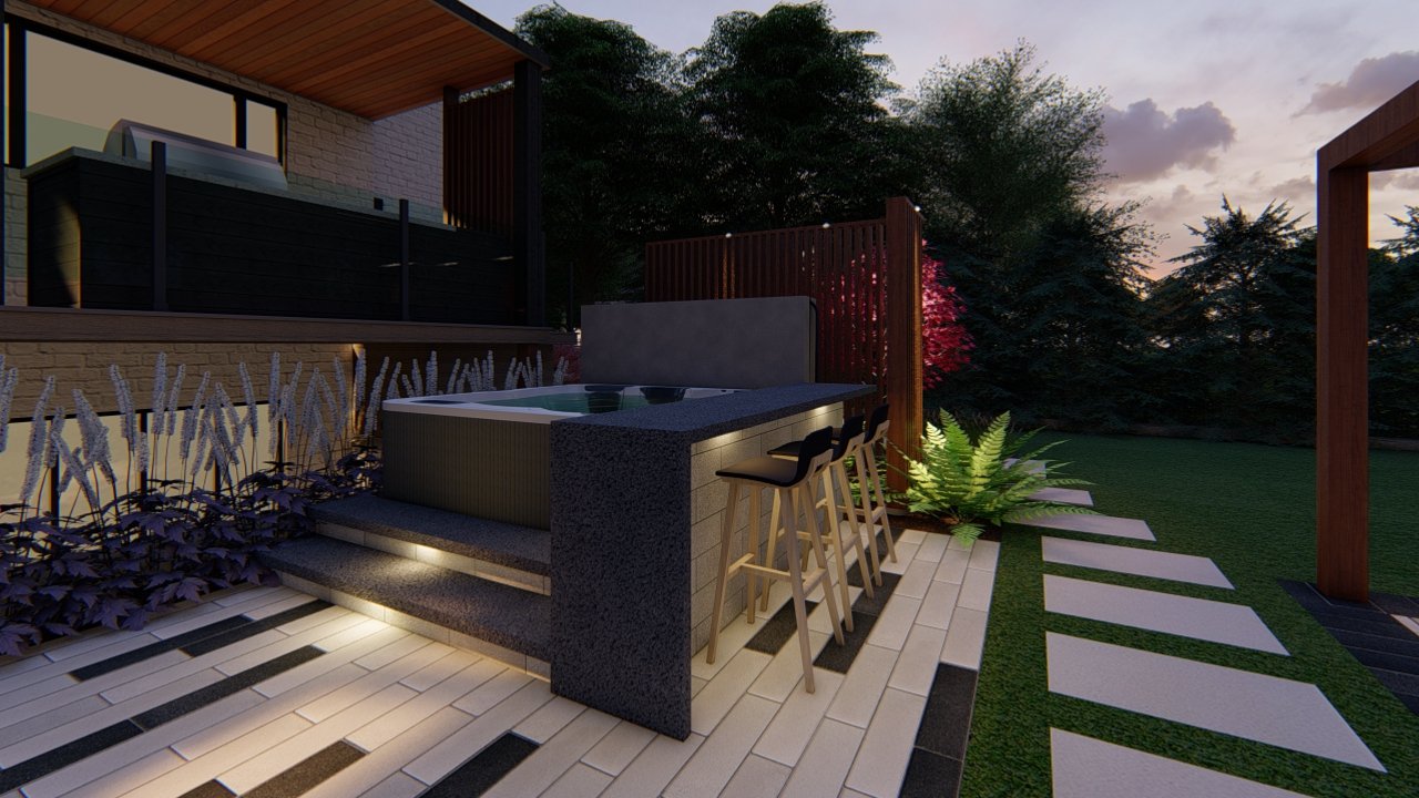 We collaborated with Lotus Landscaping Group, Oakly Landscaping, and Mandarin Survey to translate the digital vision into reality, maintaining close oversight on detailing and execution.