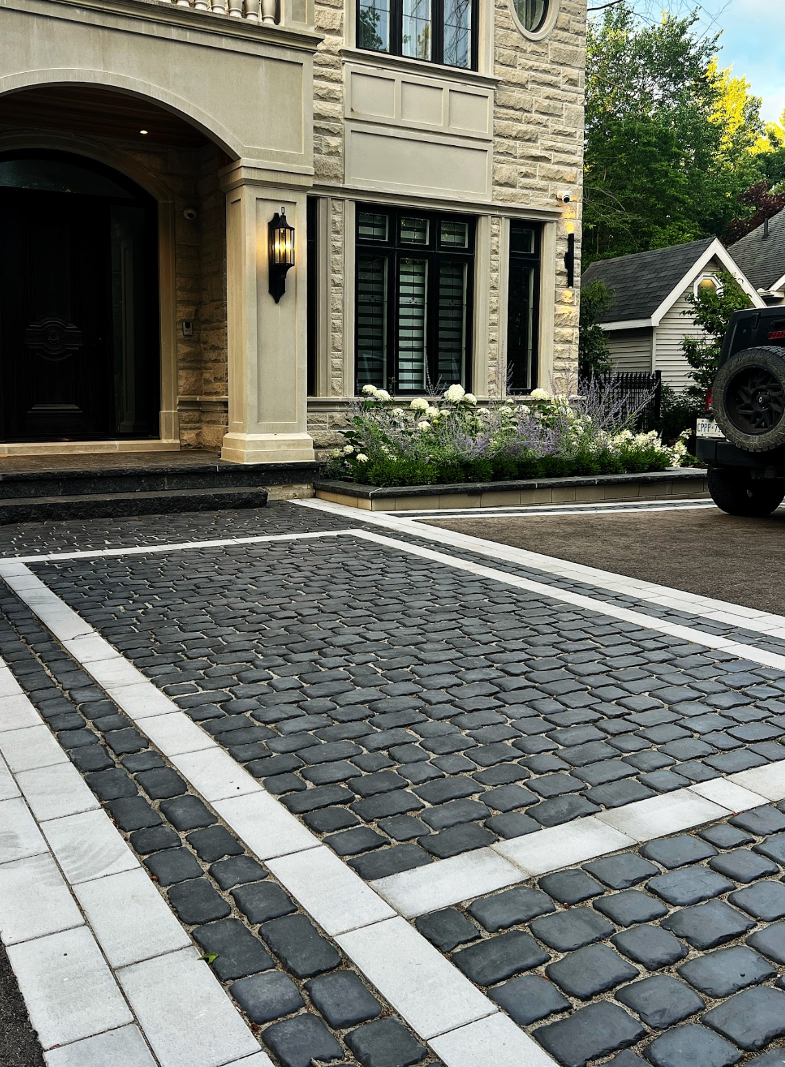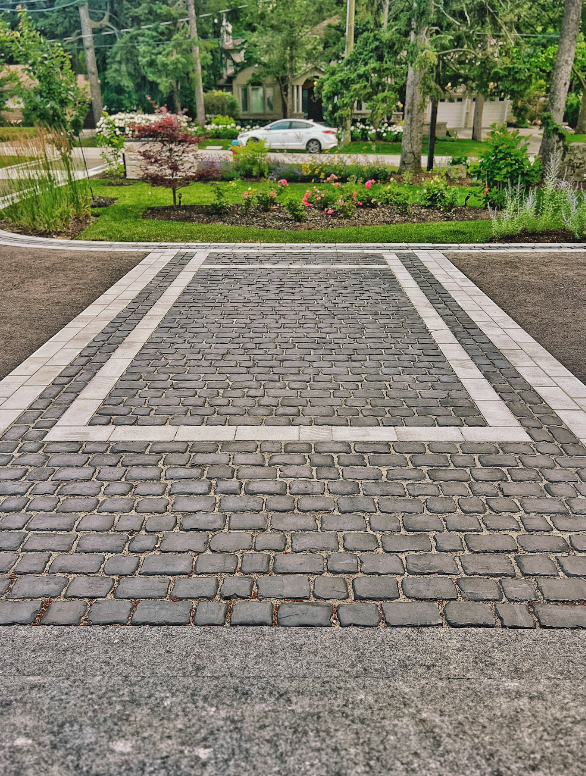 Detailed driveway borders showcase craftsmanship and luxury design.