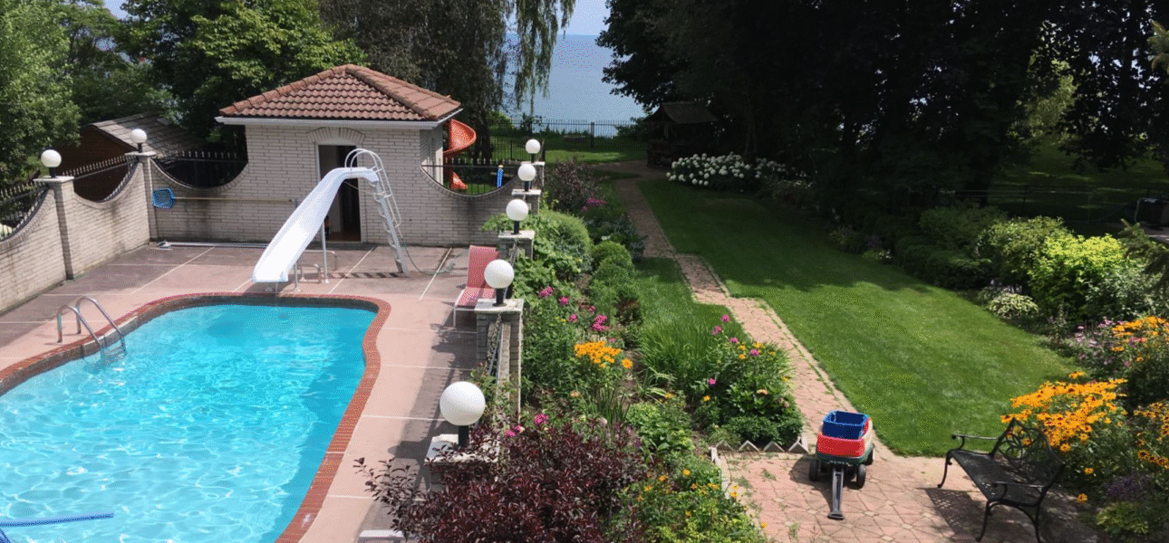 Located above the iconic Scarborough Bluffs with expansive views of Lake Ontario, the homeowners had just completed a major renovation to modernize their home’s classic exterior. Although the architecture was transformed, the outdoor spaces were left behind. The existing driveway, aged pool area, and fragmented backyard layout no longer matched the home’s updated aesthetic.